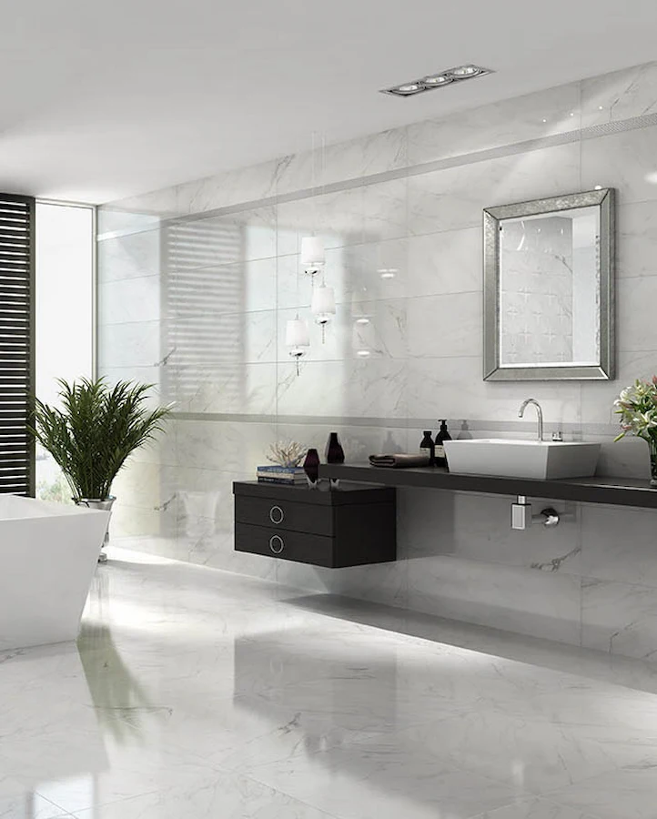 Estética: Mármol blanco majestuoso con acabado brillo espejo.