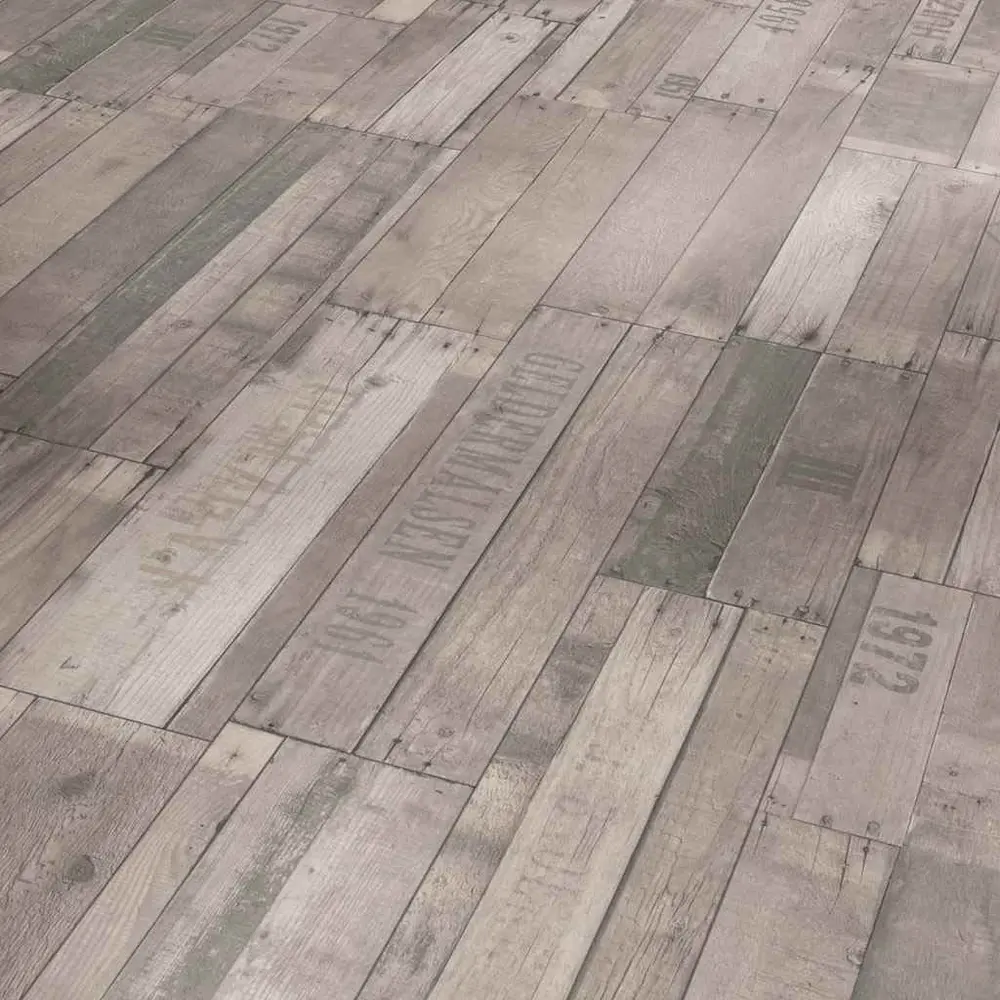 ¿Te aburren los suelos de madera tradicionales que ves en todas partes? El suelo laminado Globetrotter Modern Light, perteneciente a la audaz colección Trendtime 1 de Parador, está diseñado exactamente para ti. Este no es un simple pavimento; es una pieza de decoración central que define por sí sola el carácter de una estancia. Su diseño recrea la estética de las antiguas cajas de transporte de madera, con lamas que simulan tablillas irregulares, sellos de fechas y lugares lejanos, y un acabado desgastado que aporta un aire industrial y vintage irresistible.