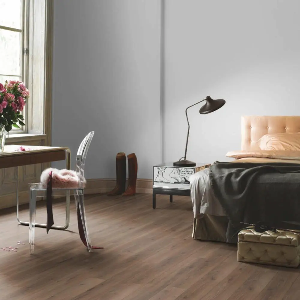 Hay suelos que simplemente cubren el hormigón y suelos que visten tu hogar. El modelo Roble Viejo al Aceite, de la gama Classic 1050 de Parador, está pensado para ti si huyes de lo estándar. Su diseño reproduce con un realismo asombroso la madera de roble envejecida, esa que parece tener historia. El acabado «al aceite» resalta la profundidad de las vetas y los nudos, ofreciéndote una superficie mate y natural que invita a descalzarse y relajarse.